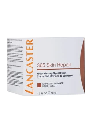 Die 365 SKIN REPAIR Youth Memroy Nachtcreme für eine optimale Regenerationsfähigkeit der Haut in der Nacht, wenn diese am aufnahmefähigsten ist. Diese Creme kombiniert Lancasters Melatonin-Komplex sowie Epigenetik-Technologien und hilft: – Die Reparatur der Haut über Nacht und die Aufrechterhaltung des Antioxidantien- und Zellernergie-Levels zu unterstützen. – Die natürliche Fähigkeit der Haut sich zu regenerieren und jünger auszusehen zu reaktivieren. An 365 Tagen im Jahr wirkt Ihre Haut morgens spürbar ausgeruhter, frischer und erhält ihre jugendliche Ausstrahlung zurück. Dank der innovativen Shape-Memory Textur, hinterlässt diese Creme ein strahlendes und pralles Hautgefühl.