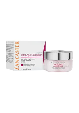 Total Age Correction Amplified Anti-Aging Day Cream & Glow Amplifier SPF15 delivers visible results. Skin is luminous, wrinkles look reduced. Facial contours are more defined. Thanks to SPF15 and Lancaster’s Full Light technology, skin is protected from damage due to light