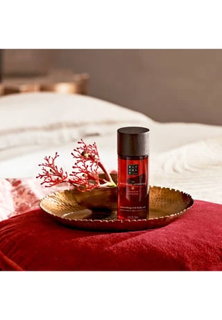 Genießen Sie mit dem reichhaltigen Körperöl von The Ritual of Ayurveda während Ihrer täglichen Hautpflegeroutine ein wenig Extrapflege. Die luxuriöse Formulierung enthält drei ayurvedische Öle, die bekannt sind für ihre intensiv pflegenden Eigenschaften. Dazu gehören pflegendes Süßmandelöl, entzündungshemmendes Moringaöl und feuchtigkeitsspendendes Kokosöl. Dieses reichhaltige Körperöl versorgt Ihre Haut intensiv mit Feuchtigkeit und sorgt für weiche und schön gepflegte Haut. Unser Must-have für sehr trockene Haut. Und besonders gut für die kalten Wintermonate, wenn unser Körper mehr Pflege und Feuchtigkeit benötigt. Dieses reichhaltige Körperöl besteht zu 97 % aus natürlichen Inhaltsstoffen, die die Haut optimal pflegen. Die restlichen 3 % sind reine und bewusst im Labor hergestellte Inhaltsstoffe, die die Formulierung und Sicherheit unserer Produkte unterstützen.