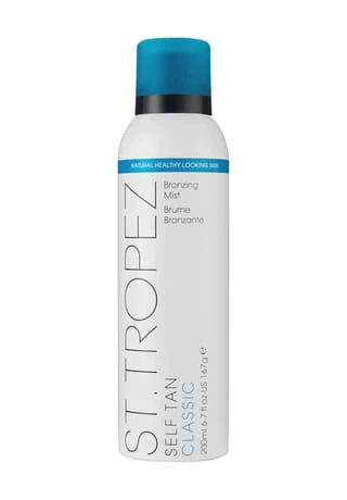 Das St.Tropez Self Tan Classic Bronzing Mist verleiht eine natürlich goldene Bräune, die lange anhält und gleichmässig verblasst. Das Self Tan Classic Mist ist ein schnell trocknendes, extrem feines Selbstbräunungsspray, das sich dem individuellen Hautton anpasst und eine natürlich aussehende, goldene Bräune verleiht. Dank des speziellen 360° Sprühkopfes sind selbst schwer erreichbare Partien kein Problem mehr. Der hohe Anteil an pflegenden Wirkstoffen und Antioxidantien hydriert die Haut und schützt sie, damit die Bräune lange anhält und langsam und gleichmäßig verblasst. Der leichte Nebel legt sich gleichmäßig auf die Haut und entwickelt eine klassisch, natürliche Bräune mit langanhaltendem Finish. Die Aromaguard™ Duft-Technologie verhindert den unangenehmen Geruch von Selbstbräunern. Das Spray ist getönt, um sicherzustellen, dass alle gewünschten Hautpartien erreicht werden.