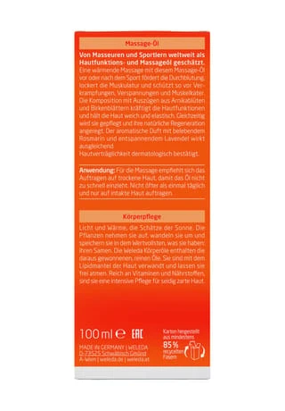 Wirkung: WärmendHauttyp: Alle HauttypenBesonderheit: Parabenfrei, Silikonfrei, dermatologisch getestetZertifizierung: NATURE